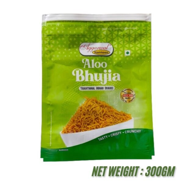 Aloo Bhujia is a savory snack made from a mix of potato and gram flour, flavored with tangy spices. Its crisp texture and zesty taste make it a beloved choice for all age groups.