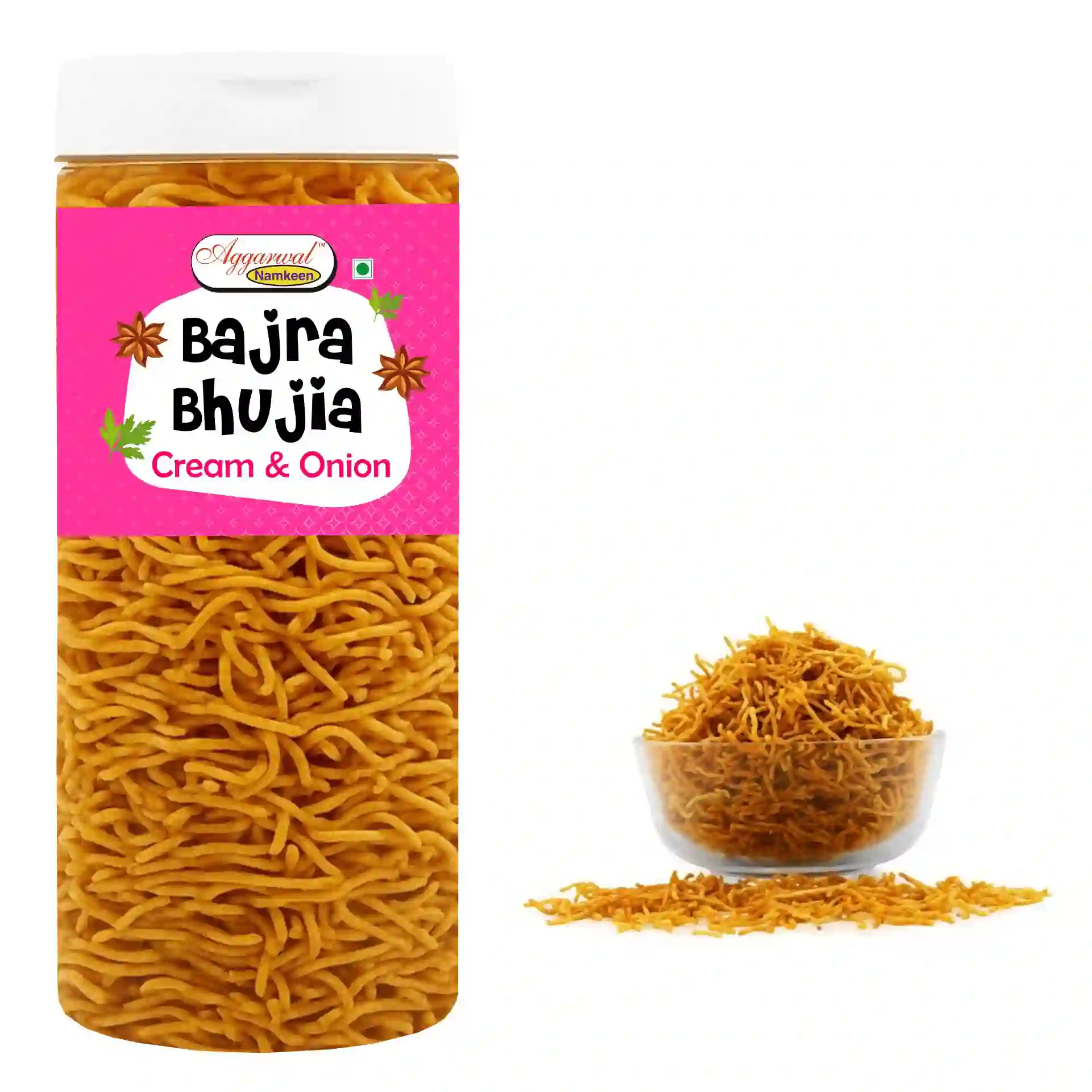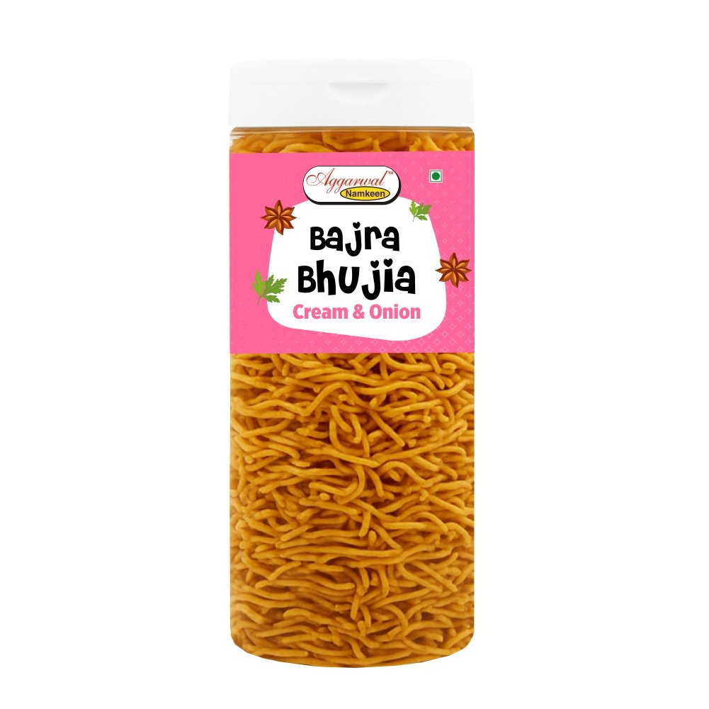 Pearl millet (bajra) bhujia offers a hearty crunch with a mildly earthy flavor. Crafted from bajra flour and aromatic spices, it?s rich in minerals, fiber, and energy.