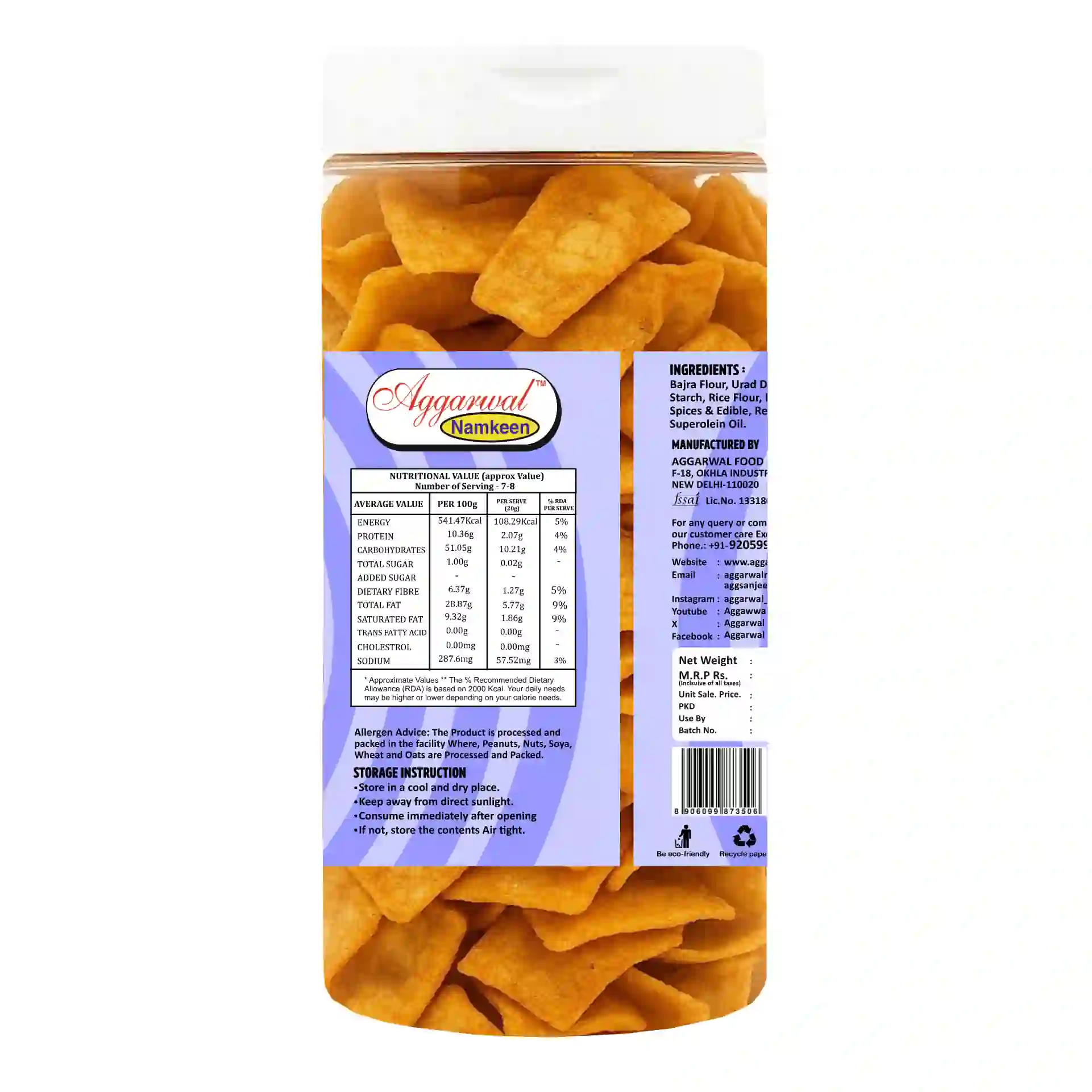 Made from pearl millet (bajra) flour, these chips are crunchy, fiber-rich, and full of nutrients. They offer a hearty, earthy flavor, making them a healthy alternative to conventional snack chips.