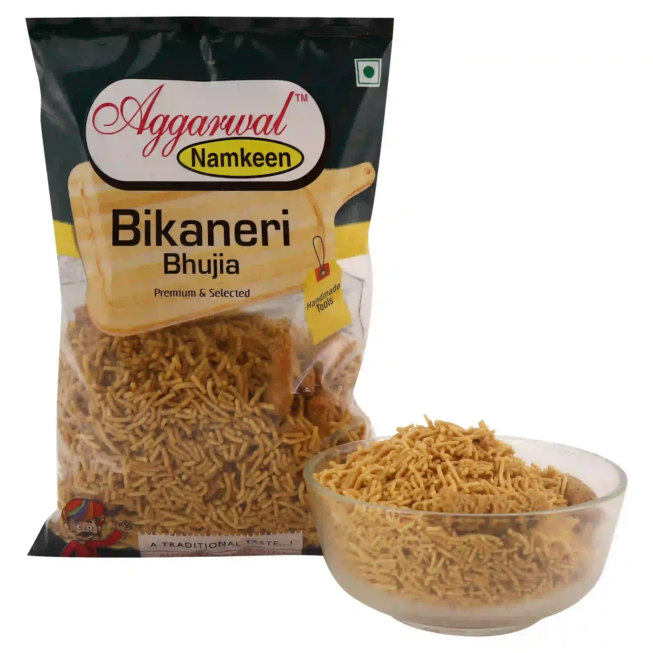 Bikaneri Bhujia is a popular Indian snack originating from Bikaner, Rajasthan. It consists of crispy, spiced gram flour strands, often mixed with a variety of spices. Known for its crunchy texture and tangy flavor, it’s a favorite teatime snack across India.