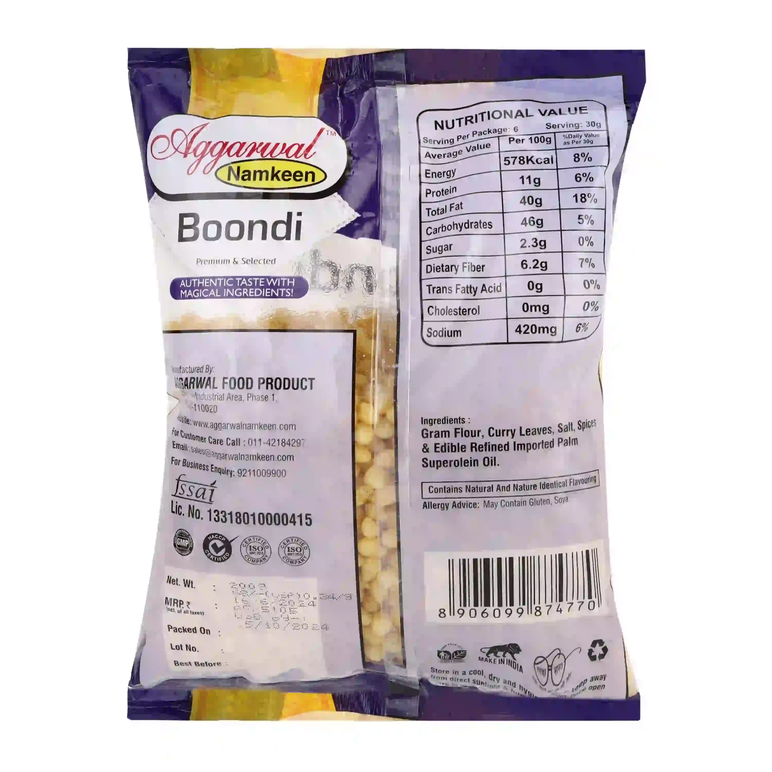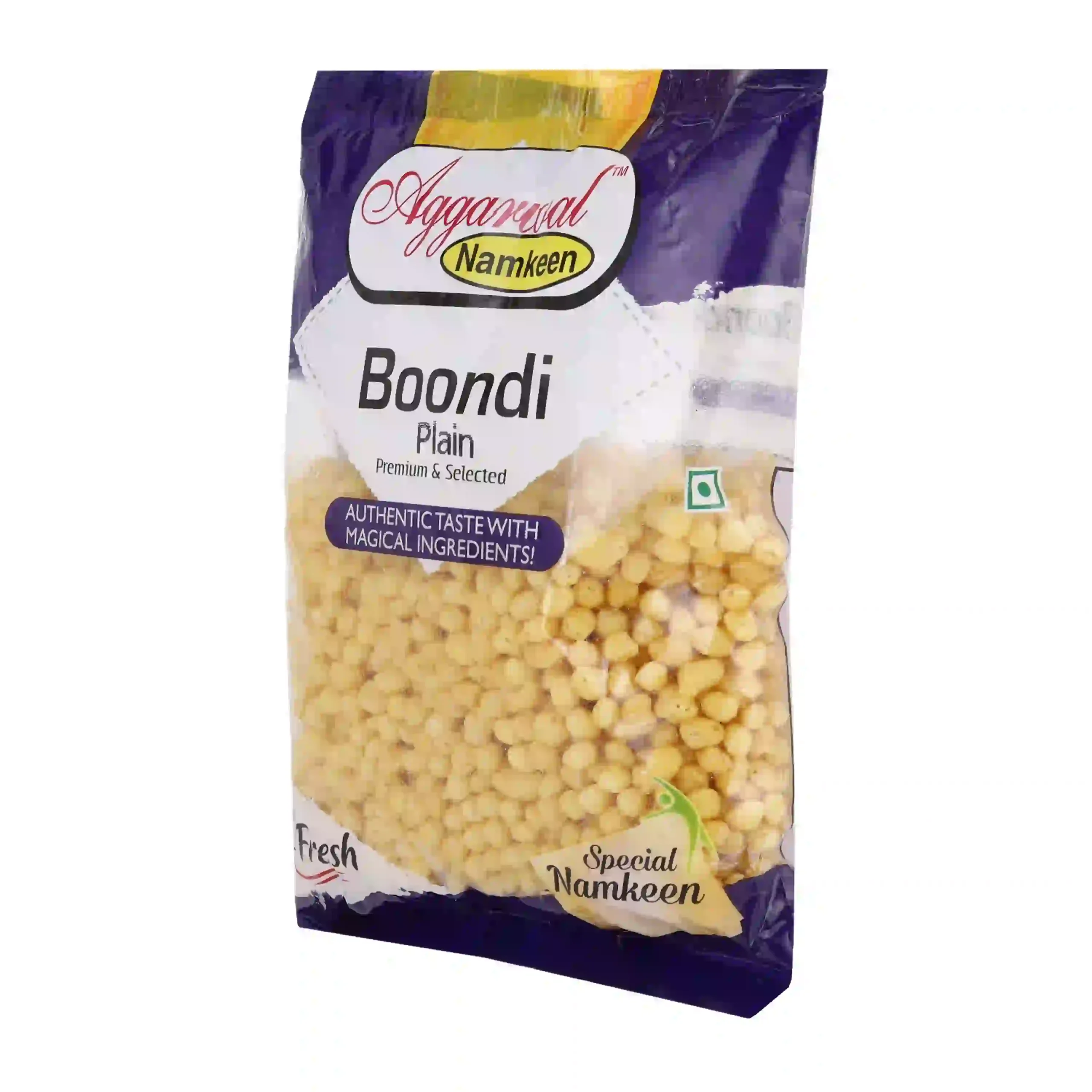 Boondi Plain consists of tiny, crisp gram flour pearls. It?s perfect for snacking or adding to raita and chaats.