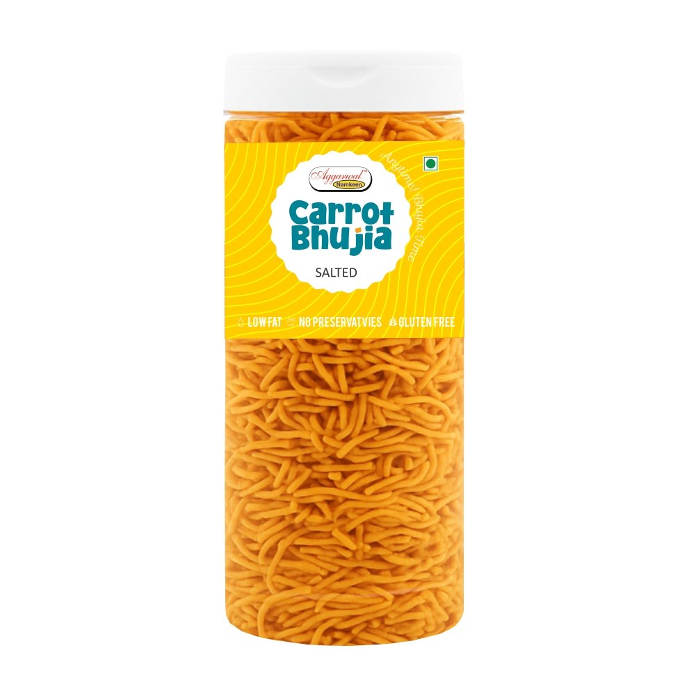 Crafted from carrot flour, this bhujia offers a mild natural sweetness paired with savory spices. Rich in fiber and nutrients, it provides a colorful, crunchy, and deliciously wholesome snack. stir-fry.