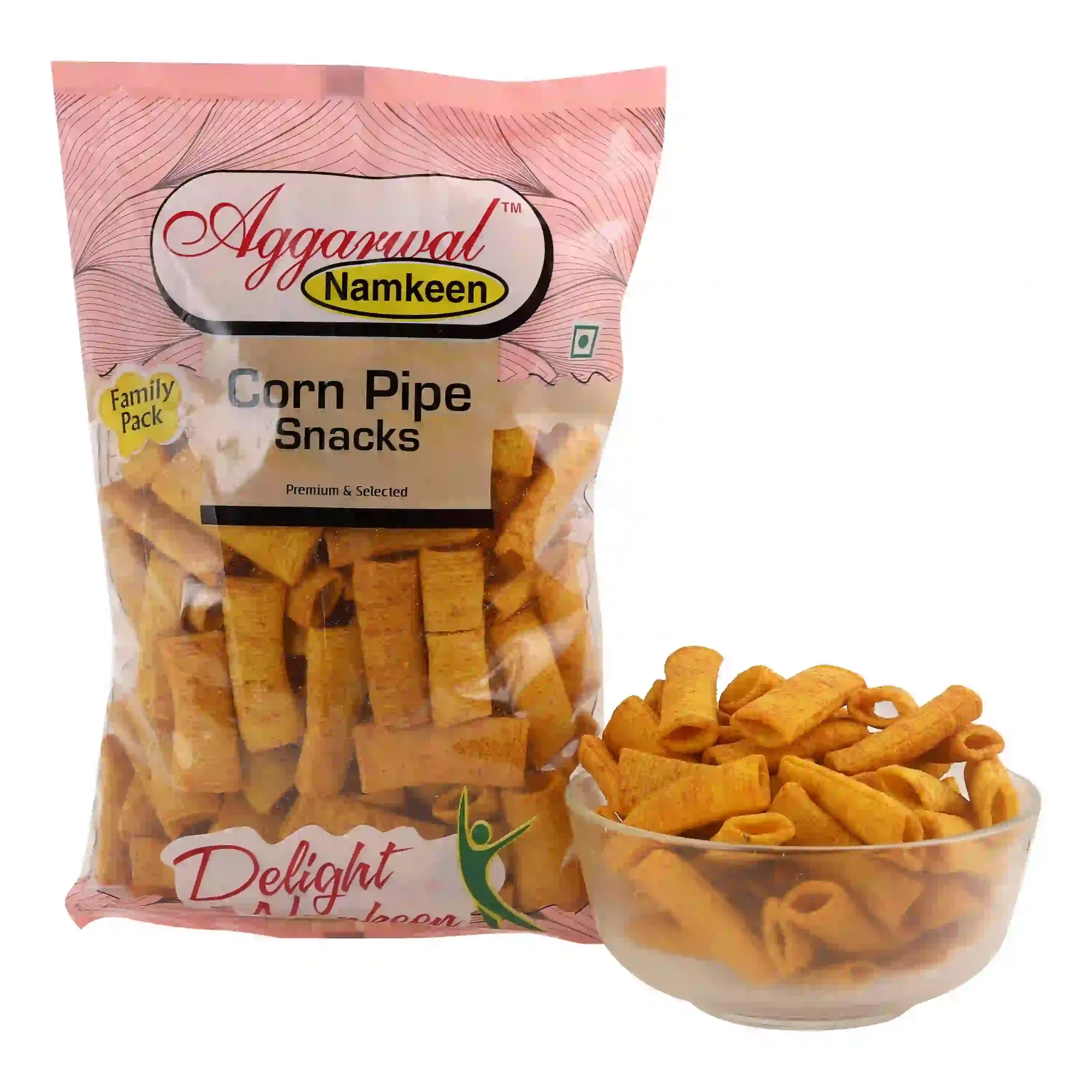 Corn Snacks Pipe features puffed corn snacks shaped like tiny pipes, seasoned for a fun, crunchy munch.