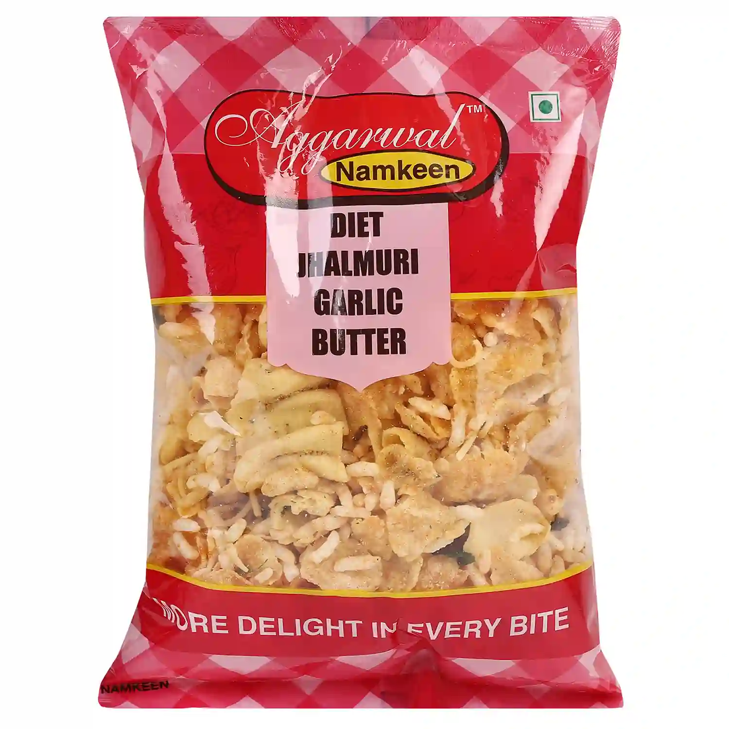 Diet Jhalmuri Garlic?Butter combines puffed rice with savory garlic-butter notes and subtle spices for a rich, yet light snack.