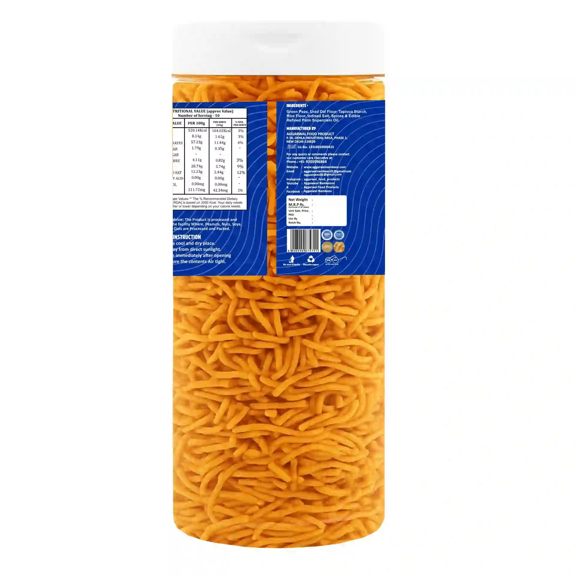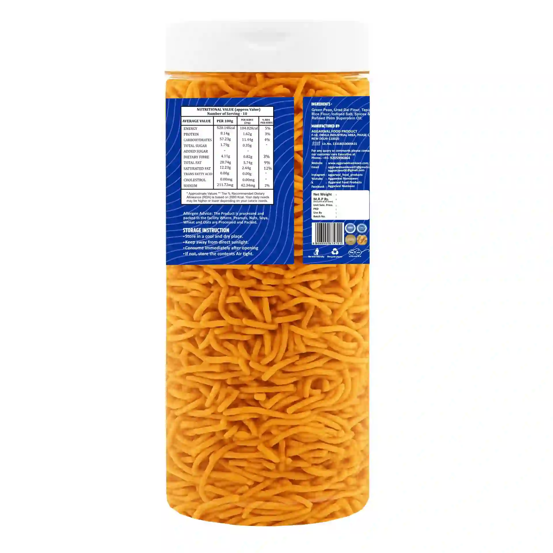 A savory and crunchy stir-fry bhujia made from green peas flour, seasoned with Indian spices. This protein-rich snack offers a satisfying texture with a mild, earthy flavor, perfect for guilt-free munching.