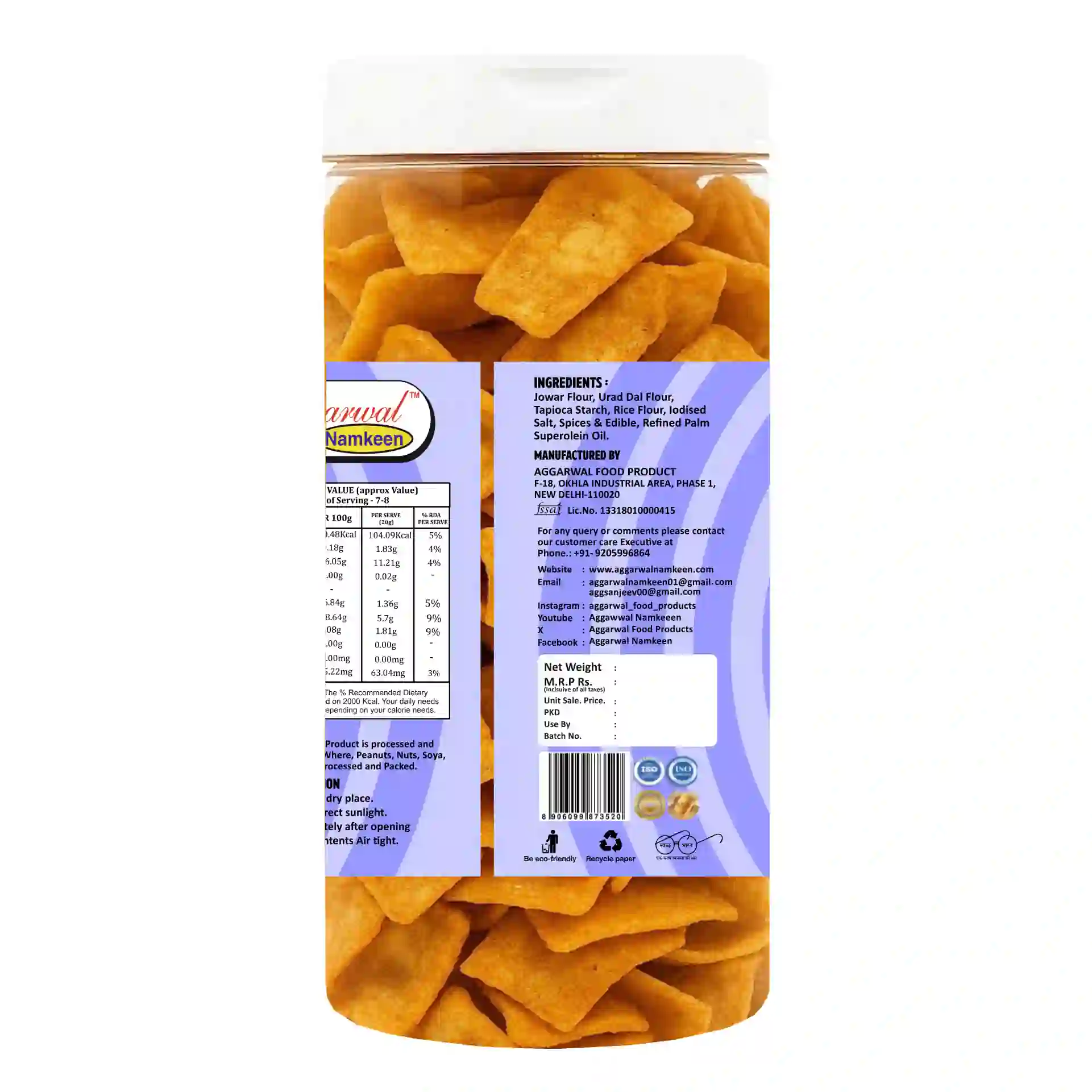 Jowar chips are made from sorghum flour, offering a wholesome crunch with a mild, nutty flavor. Gluten-free and rich in fiber, these chips are perfect for mindful snacking without compromising on taste.