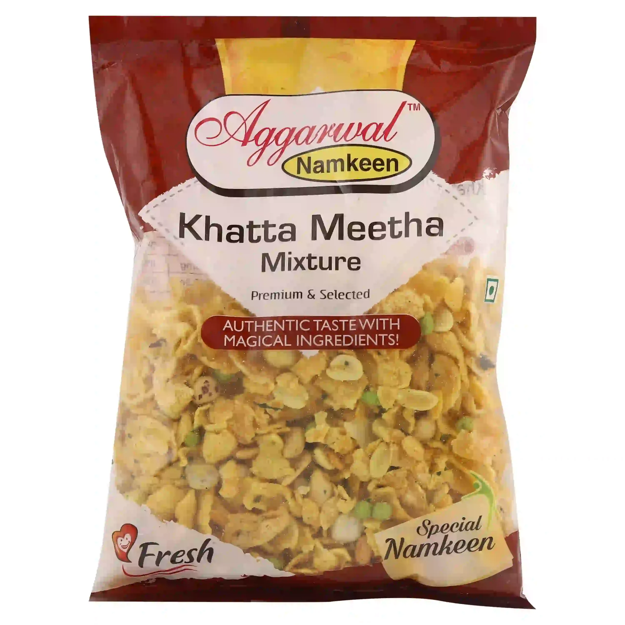 Khatta Meetha Mixture is a delightful mix of sweet and tangy flavors. Combining sev, boondi, raisins, and peanuts, it offers a playful contrast in every crunchy bite.