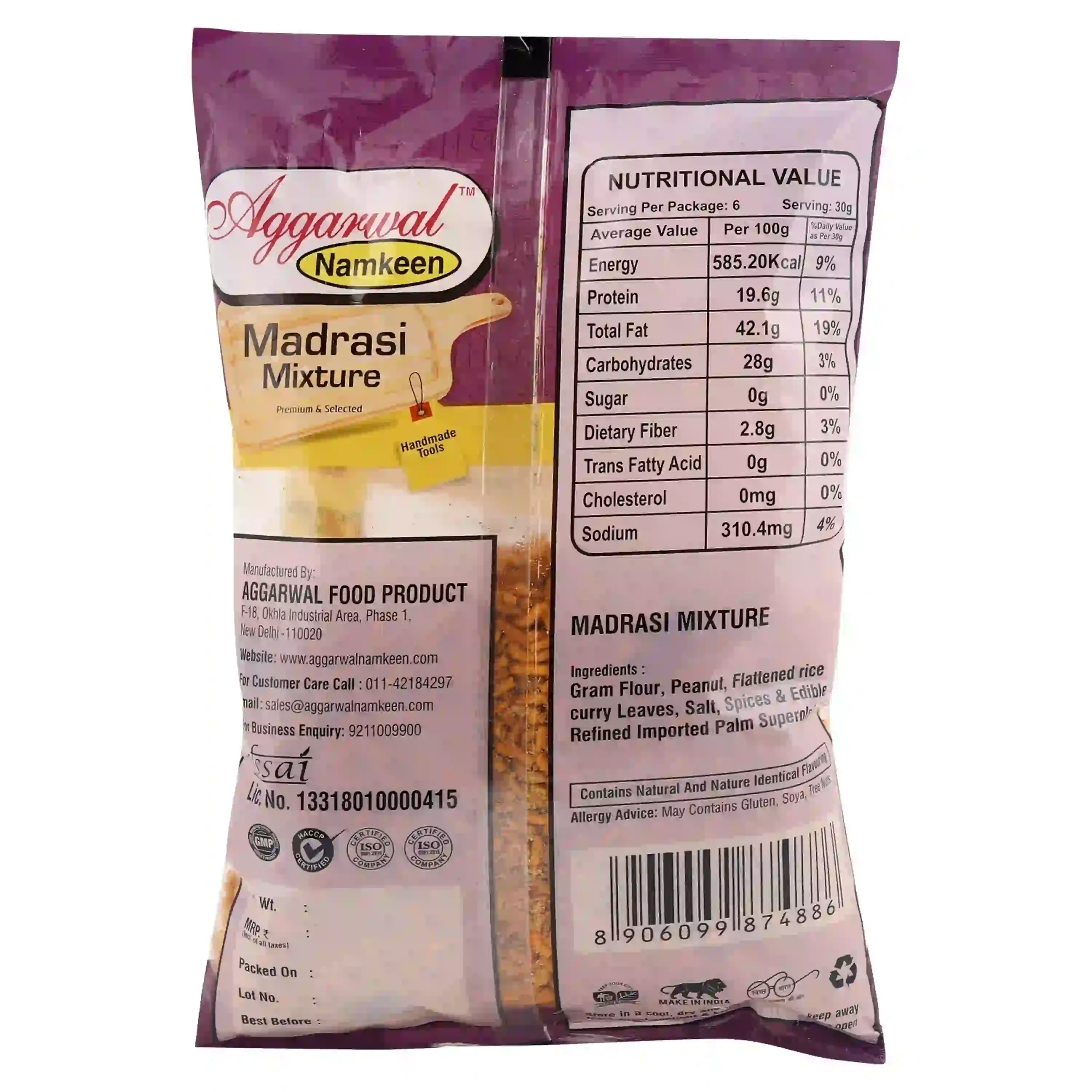 Madrasi Mixture is a South Indian-style spicy snack blend made with sev, curry leaves, nuts, and aromatic spices. It has a bold flavor and crispy texture that make it unique and flavorful.