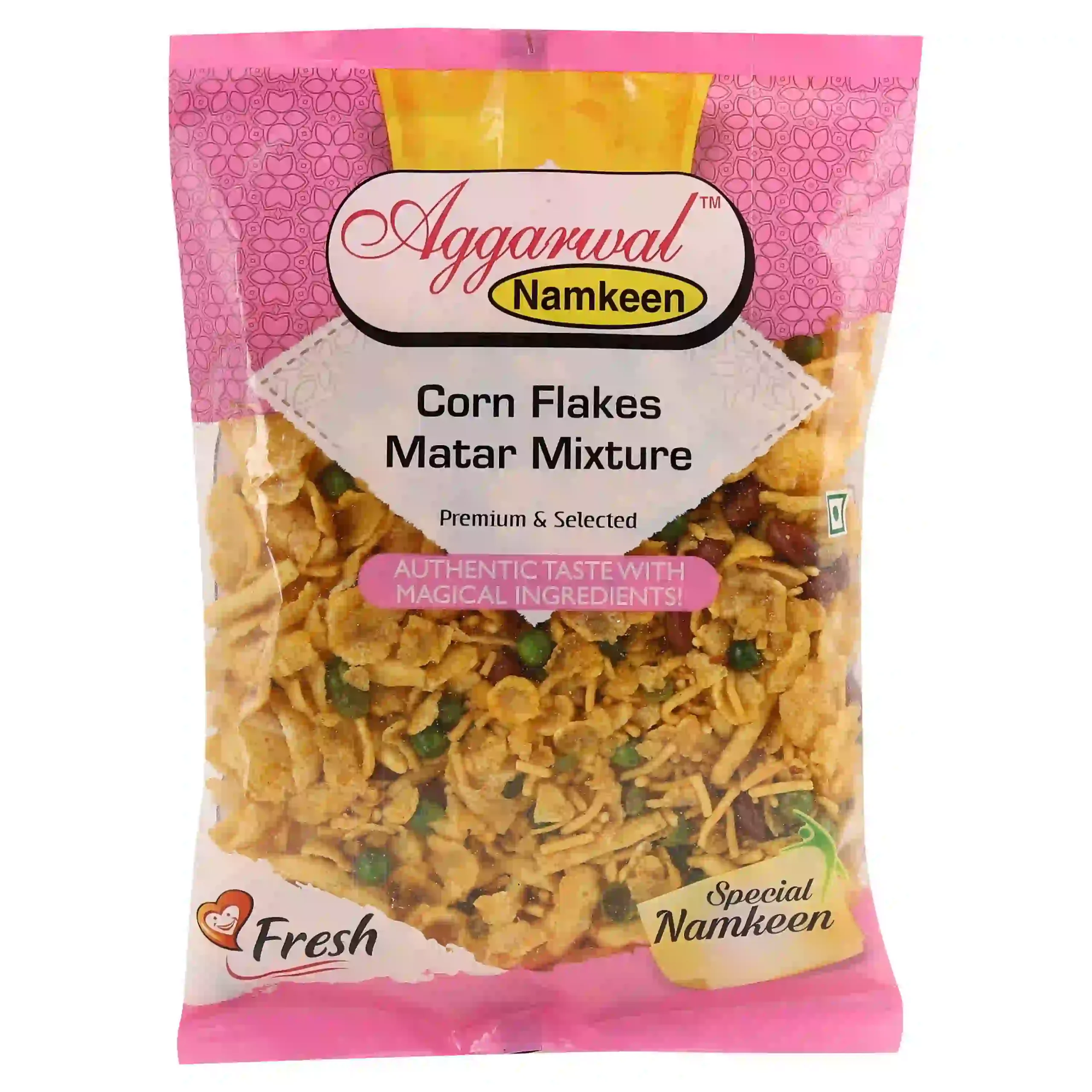 Matar Mixture is a crunchy combination of roasted or fried green peas mixed with sev, peanuts, and spices. It delivers a unique texture and mildly spicy taste.
