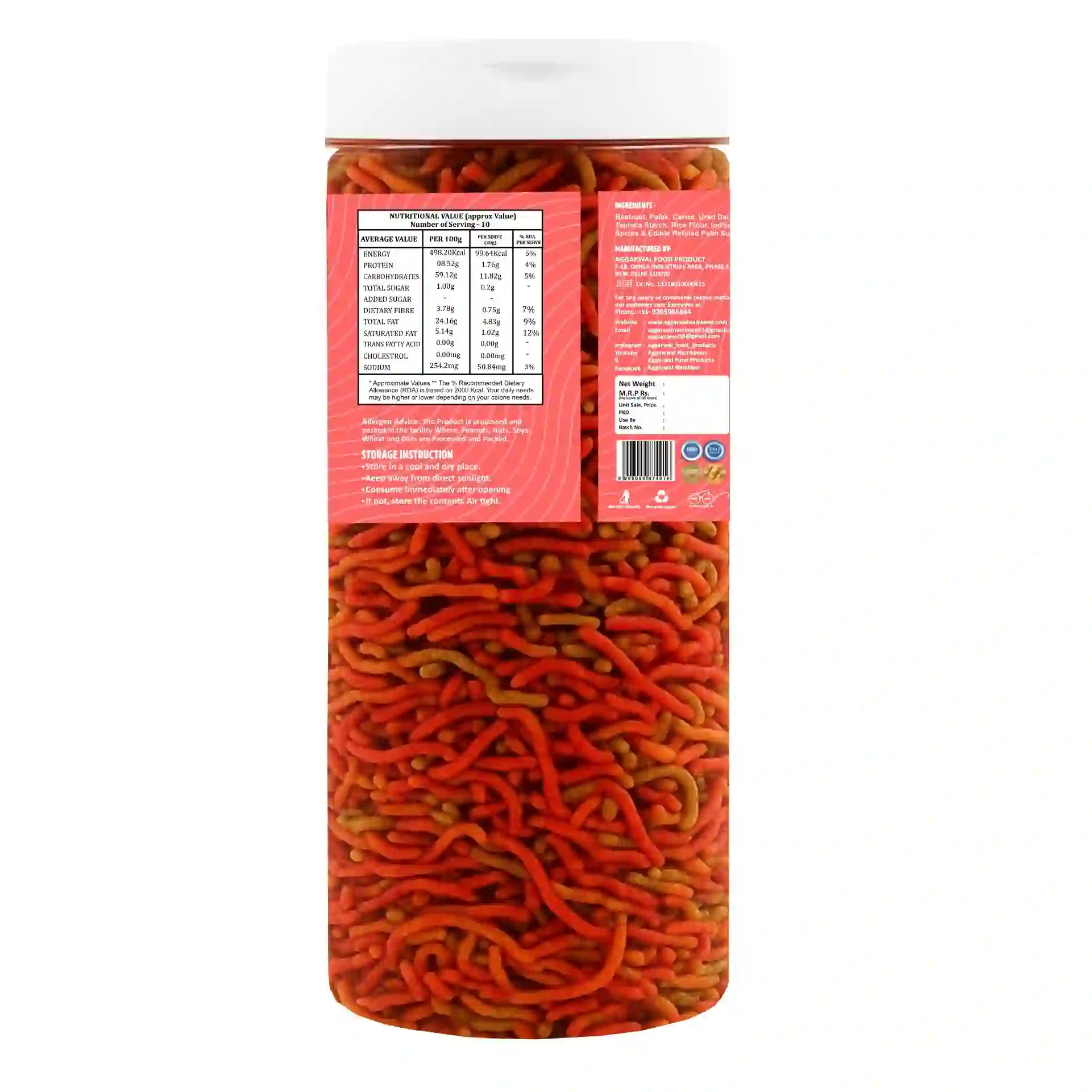 A medley of veggie crisps?beetroot, carrot, broccoli, and sweet potato?mixed with peanuts, lentils, and spices. It delivers a combination of textures, colors, and natural flavors for a wholesome, delightful snacking experience.