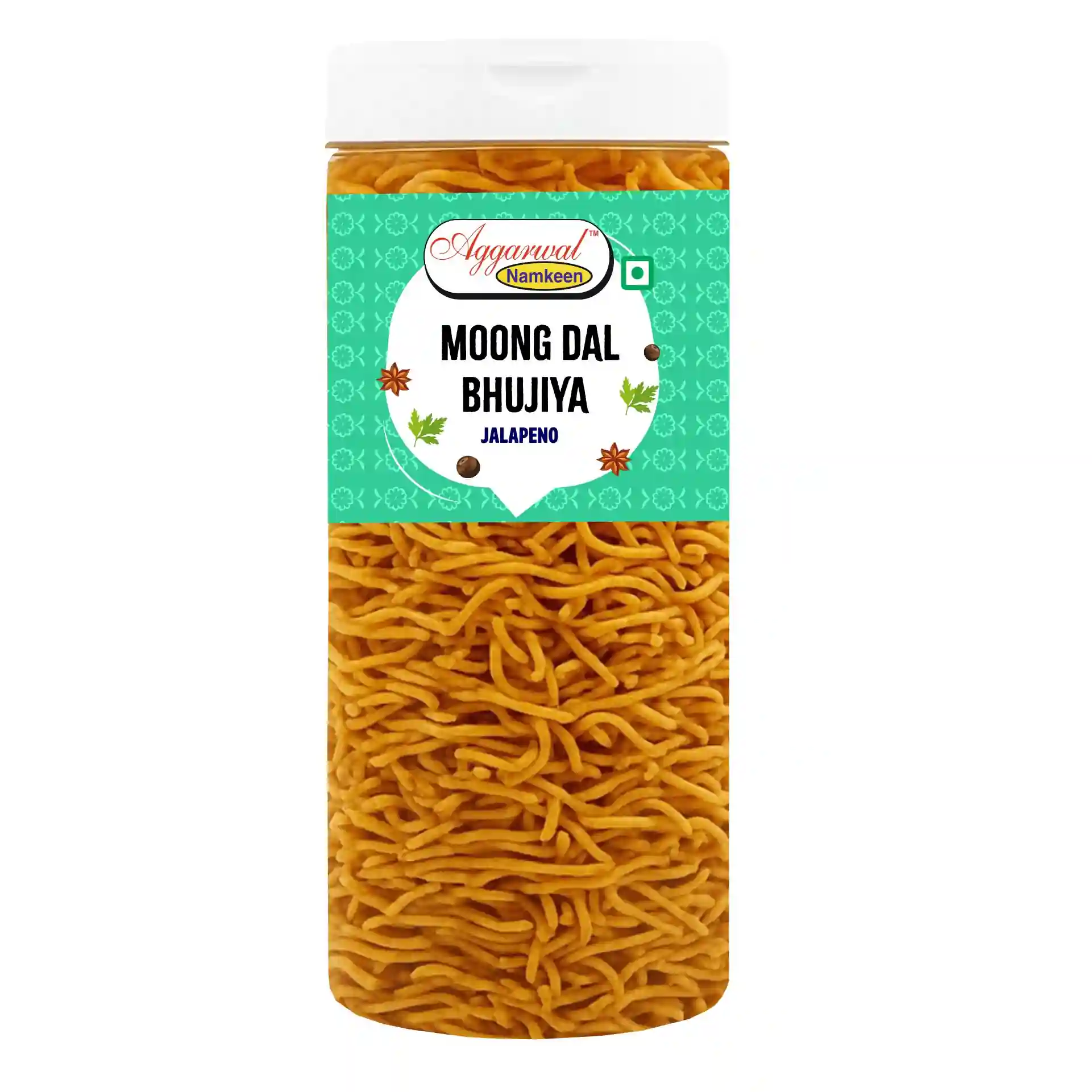 Moong bhujia is made from moong lentil flour, offering a crisp crunch with savory spices. Protein-packed and light, it?s a perfect choice for health-conscious snack lovers.