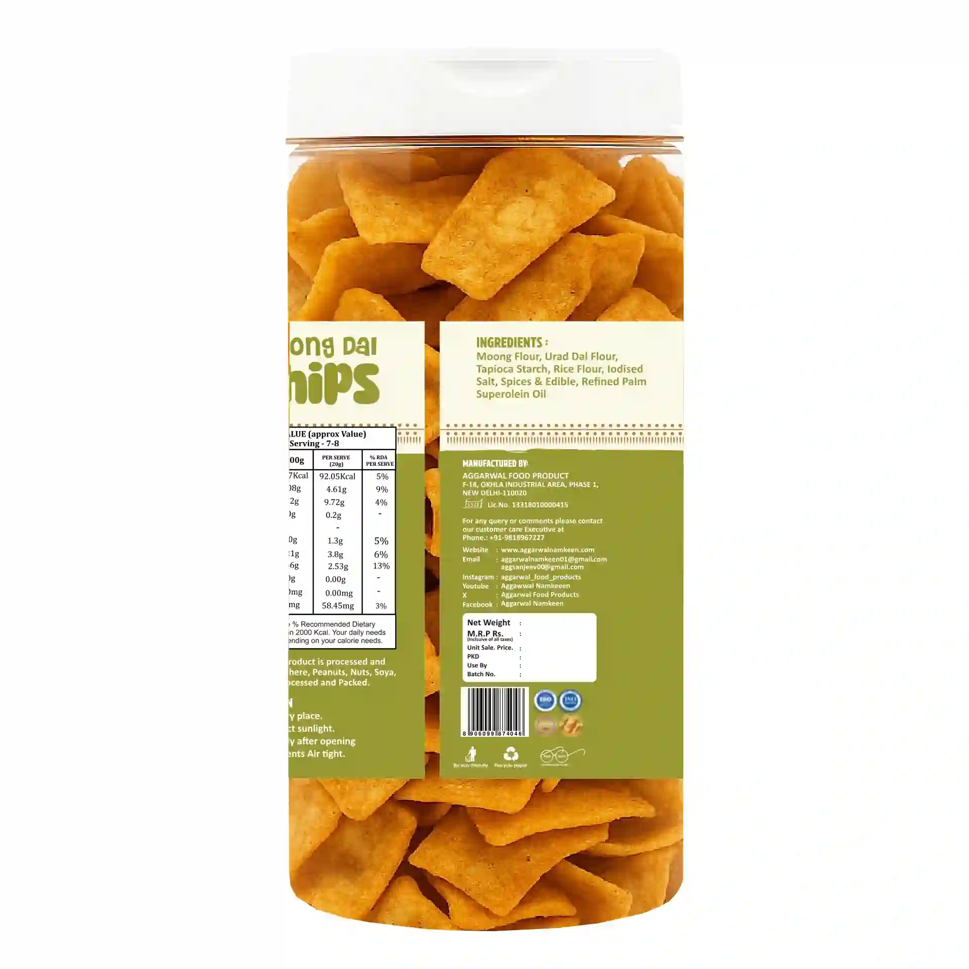 Made from wholesome moong lentils, these crispy chips are light yet satisfying. Rich in protein and fiber, they deliver a nutty flavor and are perfect for anyone seeking a nutritious, plant-based snack option.
