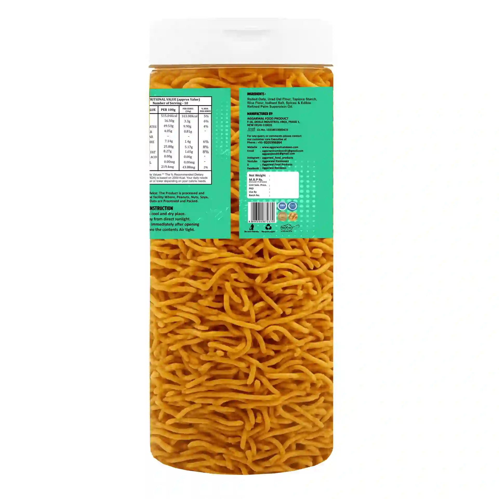 Oats bhujia combines oats flour with aromatic spices, offering a crunchy texture and hearty flavor. Packed with fiber and nutrients, it?s a healthier twist on traditional savory snacks.