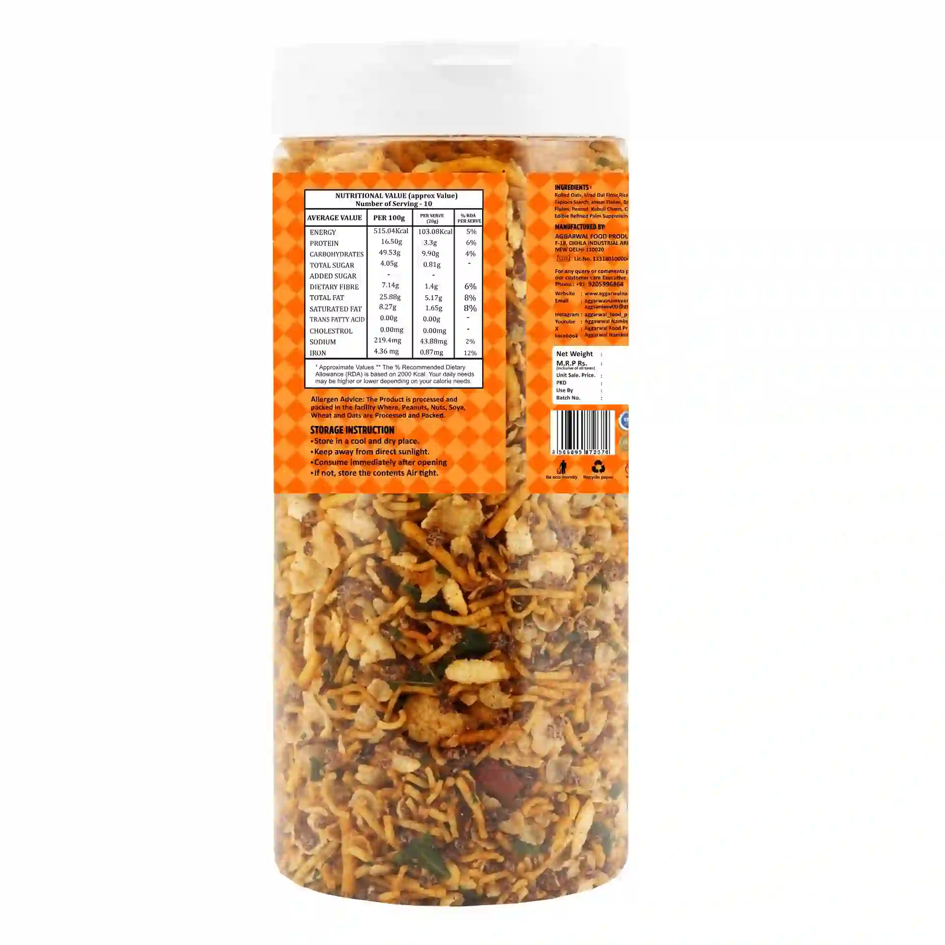 Oats flakes combined with peanuts, lentils, and flavorful spices create a hearty, fiber-rich mixture. It offers a delicious crunch and energy-boosting nutrients while supporting heart health and mindful snacking.