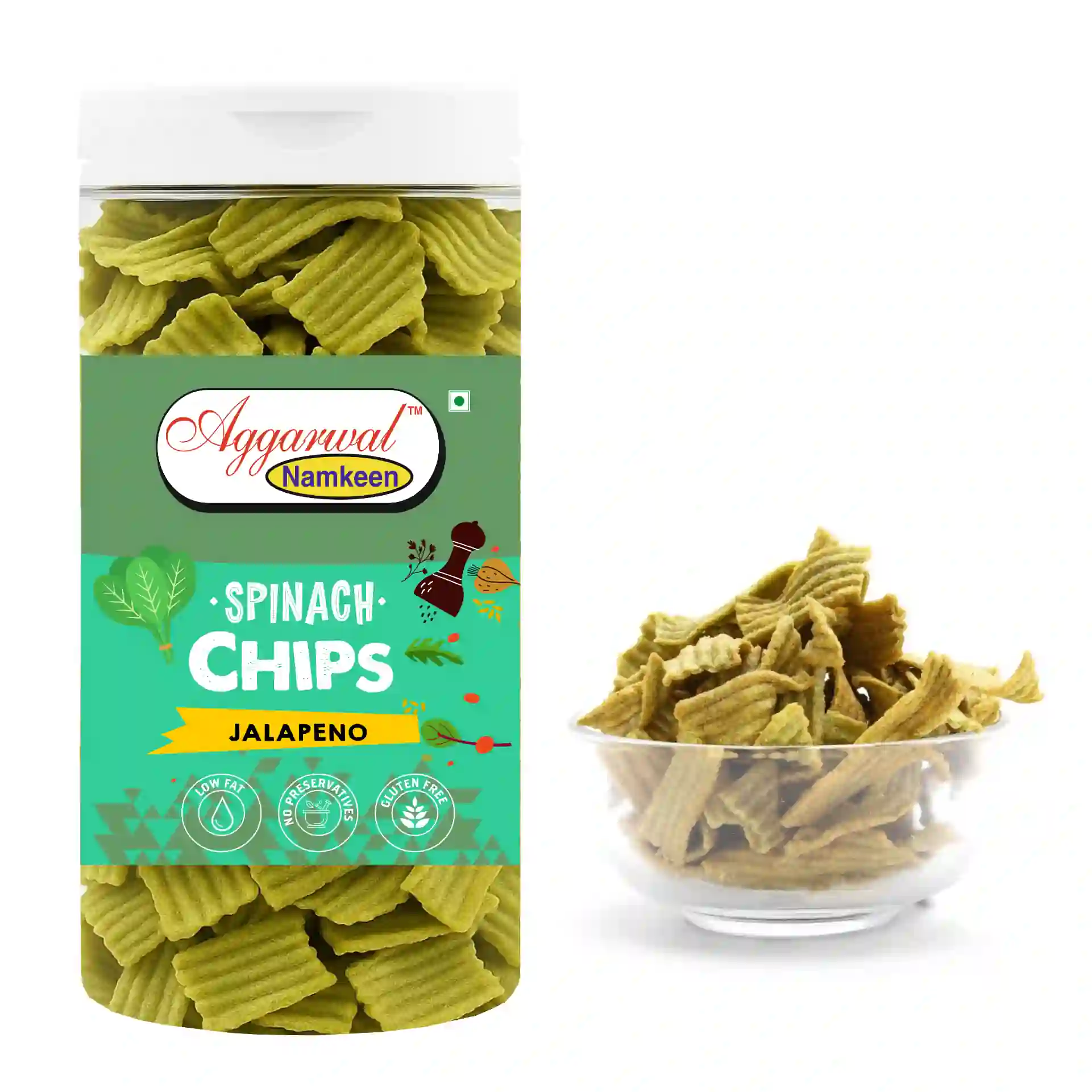 Crispy stir-fry chips made from fresh spinach leaves, seasoned to perfection. Rich in iron, fiber, and essential vitamins, these chips offer an earthy flavor and a nutritious crunch, perfect for mindful snacking anytime.