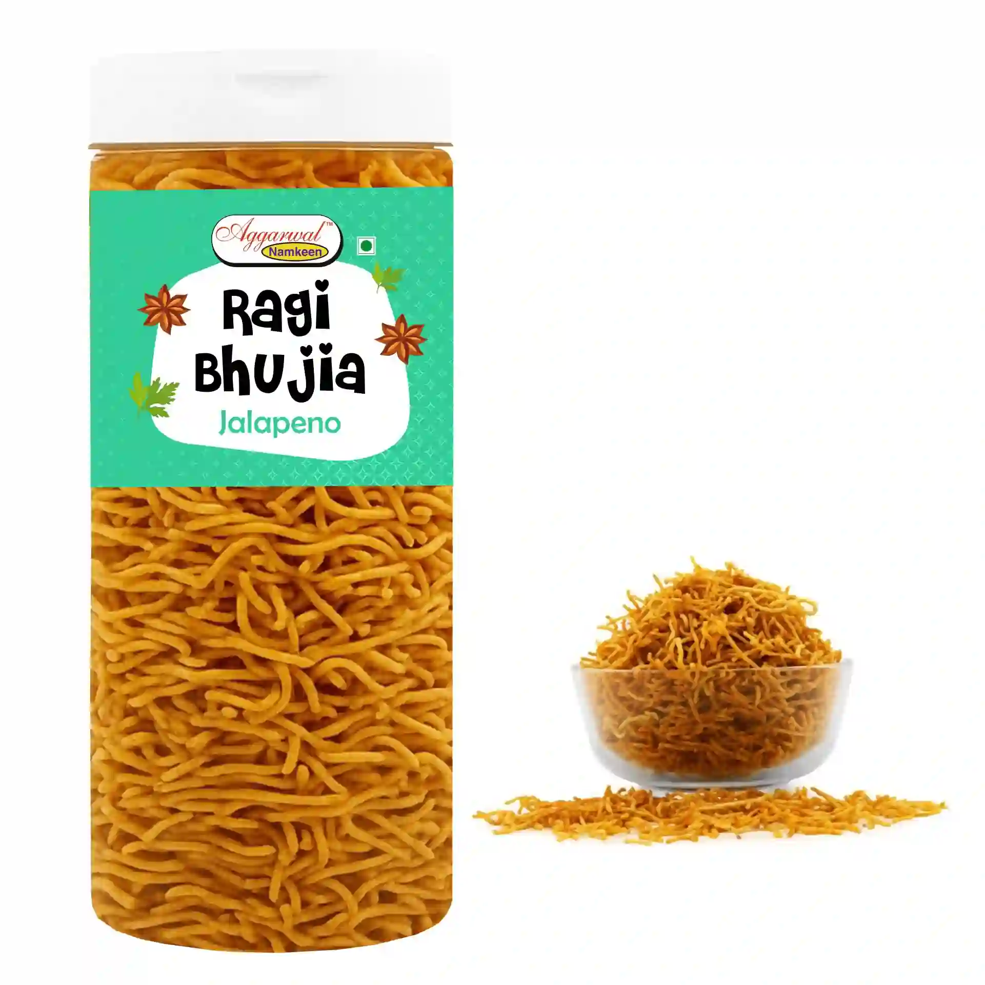 Ragi bhujia is crafted from finger millet (ragi) flour, delivering a hearty crunch with a nutty flavor. Rich in calcium, iron, and fiber, it?s a deliciously healthy, gluten-free snack option.