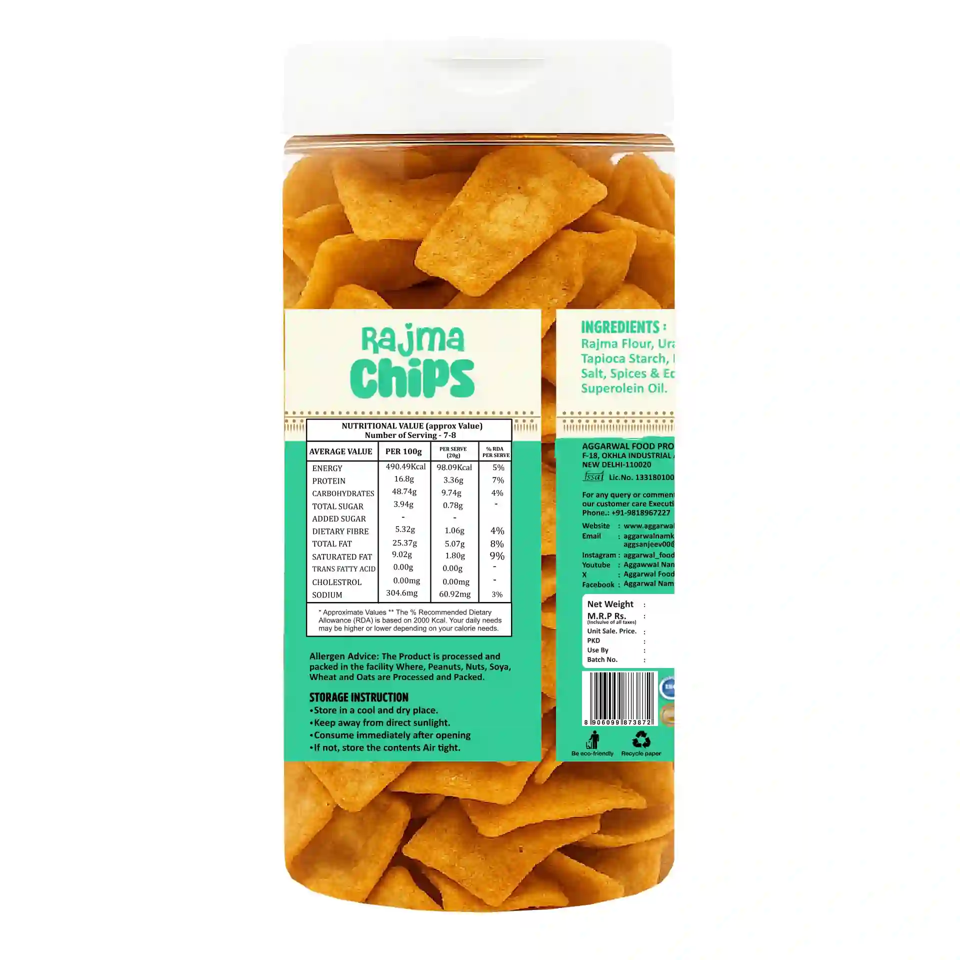 Crafted from kidney beans, rajma chips offer a rich, earthy taste with a crispy texture. High in protein and fiber, these chips provide wholesome nutrition while offering a unique and satisfying snack experience.