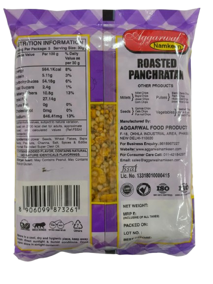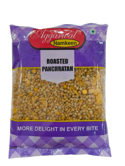 Roasted Panch Ratan Mixture blends five grains or pulses, roasted and spiced for a hearty and crunchy mix.